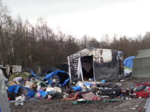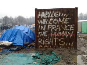 Très vite la situation se tend, les menaces de fermeture se précisent. Dans la neige la boue et le froid nous arpentons la jungle qui est devenue un véritable lieu de vie avec mosquées, églises, restaurants. Partout, des habitats informels mais aussi des tentes tenues par des associations venues de toute l’Europe : distribution de livres, écoles, activités pour les enfants. Toutes ces zones de solidarité vont passer au bulldozer comme le reste. La presse du monde entier est venue voir la destruction de la jungle, témoin de notre incapacité à faire face et à accueillir dignement ce flux de misère.