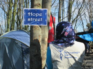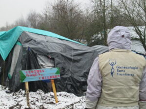 De 2015 à 2018, GSF a monté des dispensaires mobiles de Gynécologie Obstétrique, CAMINOR, pour travailler dans le Nord-Pas de Calais avec les femmes migrantes. Après la destruction de Sangatte, le problème des migrants n’a pas été résolu, ils se sont disséminés tout autour de Calais en particulier dans une zone dunaire rapidement appelée « la jungle ». Dans une revue de gynécologie, je découvre que GSF recrute sage-femmes et gynéco obstétriciens pour une durée de deux semaines. Pendant trois ans, ces binômes vont s’occuper des femmes migrantes tant à Calais qu’aux villes alentours. J’ai la chance en février 2016 de faire partie de l’aventure.