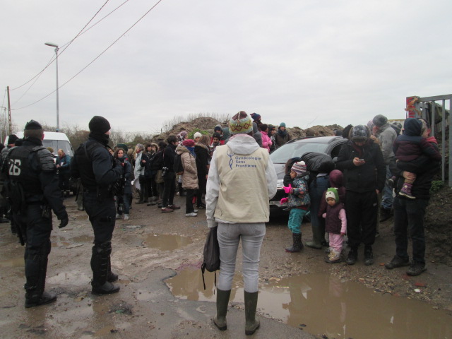 Pendant le voyage, j’ai le temps de lire et relire la presse qui décrit les conditions de vie dans la jungle et le projet à court terme de la destruction de cette zone de non-droit. Les unités de gardes mobiles de toute la France convergent vers Calais envoyées pour déloger les réfugiés pour les relocaliser dans d’autres centres dans tout l’hexagone. Assise tranquillement dans mon wagon, je n’ai aucune idée du choc qui m’attend. J’ai travaillé dans des camps de réfugiés dans beaucoup de zones du monde, je me crois solide inatteignable. Mais voir des migrants logés sous des tentes de toile dans la neige, sans chauffage cernés par les CRS dans mon propre pays ce n’est pas du tout pareil.