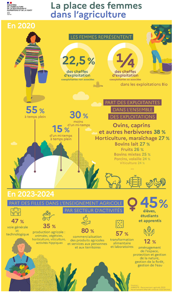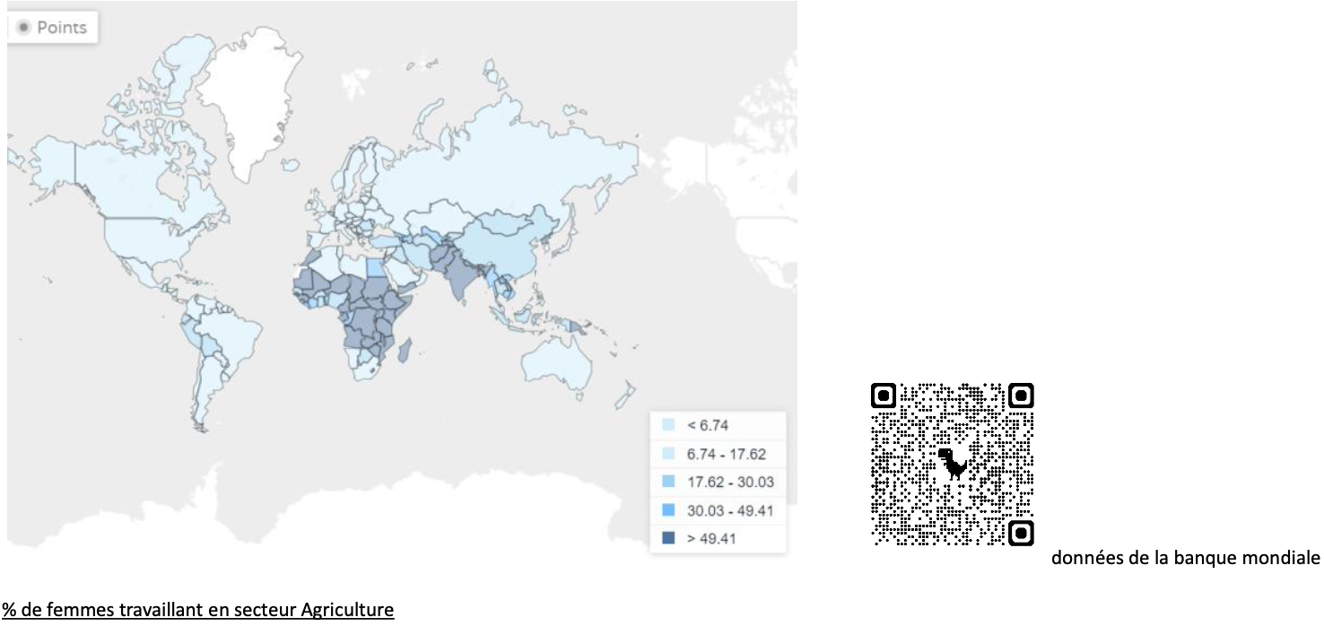 Les femmes travaillant dans le milieu rural, représentent plus d’un quart de la population mondiale. C’est en Afrique (62%) et en Asie (58%, sauf le Japon), que les femmes travaillent en majorité dans l’agriculture. En Europe c’est de l’ordre de 4%. Actuellement, en France, il est indéniable que le secteur de l’agriculture se féminise.