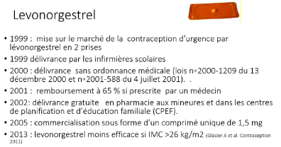 À partir de la fin des années 1990, le lévonorgestrel s’impose comme une alternative plus simple, mieux tolérée et tout aussi efficace. Il est progressivement accessible sans prescription, gratuit pour les mineures, puis administré en prise unique à partir de 2005. Un débat émerge en 2013 sur une efficacité potentiellement réduite chez les femmes en surpoids.