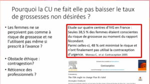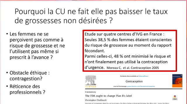 Malgré ces progrès, les études montrent que l’augmentation de l’accès à la contraception d’urgence n’a pas réduit de façon significative les grossesses non désirées ou les IVG. Les raisons principales semblent être une mauvaise perception du risque par les femmes, une sous-utilisation malgré l’exposition, et des freins sociétaux persistants, y compris chez certains professionnels de santé.