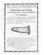 Au début du 20e siècle : Le préservatif adopte un réservoir et se décline en plusieurs couleurs et parfums. Il est garanti cinq ans et se lave après usage. Au début de ce siècle a été inventé également le préservatif féminin. Il a malheureusement disparu sous cette forme, pour renaître en 1985 sous la forme d’un dispositif intra-vaginal en polyuréthane ou nitrile.